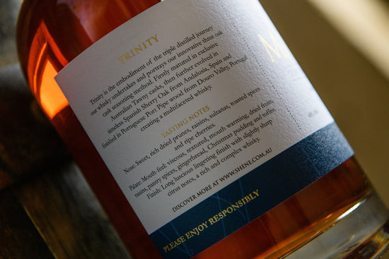 Trinity is the embodiment of the triple distilled journey our whisky undertakes and portrays our innovative three oak cask seasoning method. Firstly, matured in exclusive Australian Tawny casks, then further evolved in timeless Spanish Sherry Oak from Andalusia, Spain and finished in Portuguese Port Pipe wood from Douro Valley, Portugal, creating a multifaceted whisky.